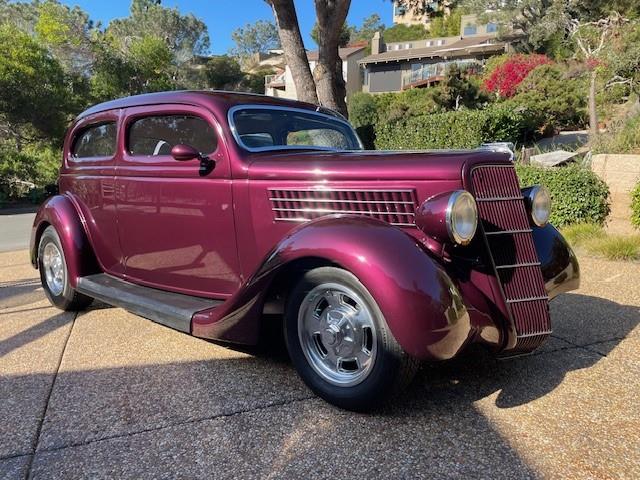 Classic Car Marketing, Inc. Southern California’s premier marketing company is pleased to introduce this new listing offered for sale by one of our clients. JUST REDUCED This 1935 Ford Tudor is all steel and is finished in a mirror Pearl Cranberry paint making it stand out in a crowd. Stage two box frame, and a 3 inch chop shows her off just right. Power is supplied by a 350 small block backed by a 350 automatic transmission, with Edelbrock carburetor and value covers, MSG ignition, ceramic coated intake and headers, and flow master exhaust, for that throaty sound we all love. Currie 9 inch rear end, rack and pinion front steering, Mustang 2 style front suspension, disc brakes up front, and drum in the rear, and Ron Francis wiring. Halogen headlights with signal and flashers. Shaved door handles with poppers give her that sleek finished look and Halibrand wheels finish out the look. Inside find a stunning tan leather interior with power bucket seats, Ididit steering column, and Vintage AC/Heat Gen II, and a Pioneer sound system to roll with your favorite tunes. This classic has it all to roll in ultimate style wherever you want to go. Offered at $54,750 OBO. For more information please visit our website at www.classiccarmarketing.net or call us at 619-972-7073. Please mention the vehicle you are inquiring about so we can respond promptly. Inspections are encouraged before any purchase, of any vehicle, anywhere.