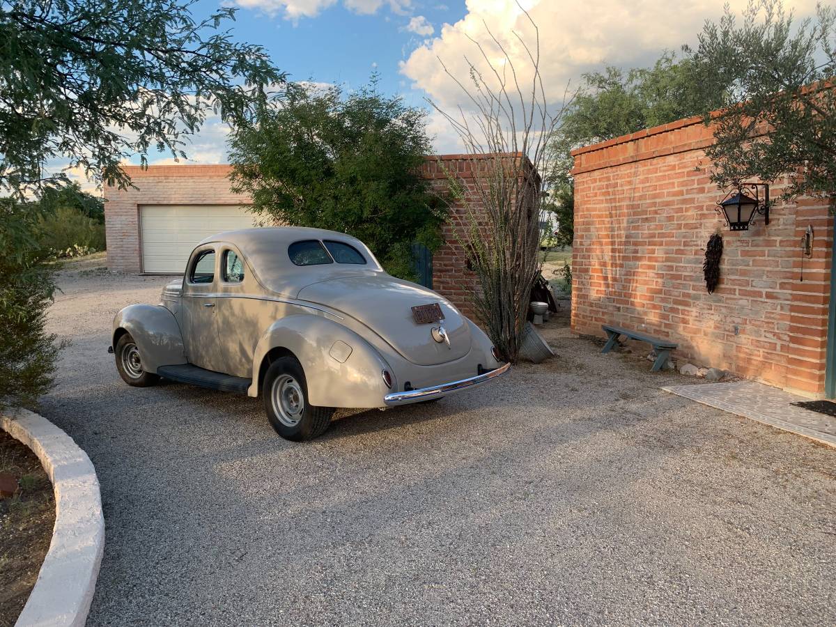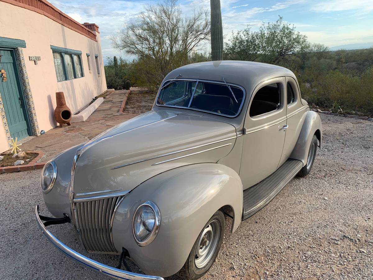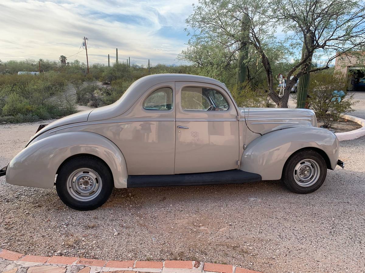 1939 Ford Deluxe Coupe has a 68 Camaro 327 engine, Turbo 350 transmission, with a new Mustang II front end including power disc brakes installed by Peter at the Old Ford Store. There is new 12 v wiring. It has a new Harris steering column with a new Banjo steering wheel and a Lokar shifter. It was painted with acrylic enamel, Tucson Tan, which is a stock color. The interior has Stewart Warner gauges, which all work. The interior has a Mohair seat, chrome garnish moldings, and a new front floor mat. The running boards have new covers. The battery is new. This is rust free all steel body (new panels installed by All Ways Hot Rods in Phoenix). There is a clear title. This is a running car, which starts and stops. There are a few things that need to be completed yet. The headliner needs to be installed (headliner is included). The car needs to be aligned. New tires should be installed. The trunk could be finished with a mat or whatever you desire. The trunk rubber is included, but not installed. This car is at the perfect state to make it your own. For example, if you do not like the Mohair interior, you could redo it to your taste . If you did not like the wheels and hubcaps, it would be the perfect time to replace them. The car is located in Tucson. If you have any questions please feel free to call or e-mail. You are welcome to come and look at the car. Reasonable offers will be considered.