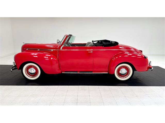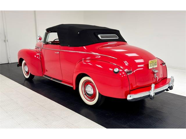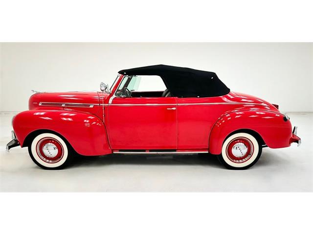 1940 Dodge Luxury Liner Series D14 Convertible Coupe In 1940, the average cost of a home was about $3,000. The cost of a gallon of milk was 54 cents and gas was 18 cents for that same gallon. The average income was about $1,400 per year, and cars were a luxury item with starting prices of $850....more than half the average national income. And if you were doing really well, you could step into a Dodge Series D14 for about $1,000. According to Classic.com, the Luxury Liner was created in 1939 to celebrate Dodge's 25thanniversary. Production only lasted until 1941 after which the model was split into the Deluxe and Custom. For consignment, a rare 1940 Dodge Luxury Liner Series D14 Convertible Coupe - this is a consignor stated 4-owner car and owner #4 did a frame-up restoration that began in 2005. An effort that has made this car a consistent award winner including "first in class" at national meets, including a win at a national Chrysler products club meet. We often use the term "show and go" and after looking this car over and despite its mechanically sound state, we'd reserve this one for mostly show...it is very, very nice. Exterior Viper Red paint adorns this car and pops like a cardinal in the snow. It's bright and shiny with wide fenders arching over red painted wheels, blingy beauty rings and red-accented Dodge hub caps...all wrapped in wide white wall tires. The body was brought to bare metal before painting and the prep work has paid off, most evident on that huge, rounded trunk. The brightwork is fantastic with polished stainless steel and chrome everywhere including the driver's spotlight. The bumper chrome is where quality really shines, and these are accented with red chevrons on the bumperettes. A black canvas top is in excellent condition and functions properly with a glass rear window. The ram ornament leaps forward and leads the charge of this pre-war beauty. One rust bubble was noted low on one door but you'd have to look for it. Interior The straight stitched split bench seat was done in gray leather and the simple door panels are also gray, with the added interest of forward leaning lines pressed into the leather. A simple door actuator and window crank are also there, not far from the small armrest. The bottom of the door card picks up on the carpet and matches with a darker gray. Flip down side seats are found in the back for additional passengers. An ornate black steering wheel is accented with red and the dash is pure art deco and not over-restored. The metal, knobs and gauge faces retain some patina, a reminder that you're driving something vintage. Some text on the speedometer reads "Floating Power" and according to some forum chatter onjalopyjournal.com, this refers to the motor mounts that reduced engine vibration. A Mopar Deluxe heater box is found in the passenger footwell...more vintage goodness! A vertical, push-button radio looks well-played and we can only imagine the big band sounds that emanated from this car back in the day. The trunk is carpeted in charcoal and continues the gray theme. Drivetrain The original 217.8ci L-head six cylinder is in place and a single barrel carburetor feeds the fuel. The transmission is a 3-speed manual that sends power to the rear wheels and 4.10 gears. Our consignor states that brakes, (drums all around), carburetor, and wiring were done during the restorative phase of this car's long life. Undercarriage The wheels and underbody parts painted in red surround an otherwise black underside. Independent suspension and coil springs up front with leaf springs in the back. Surface rust appears on suspension components, the driveshaft, and the frame while excess bushing grease has picked up some dirt along the way. Floorpans look solid and the single exhaust looks great. Everything seems to be in order here for a car that is occasionally driven. Drive-ability Easy does it as we roll this Luxury Liner out of the garage. Sixteen-inch wheels provide a comfortable ride and the L-head puts out that pleasant period sound. Second gear comes on smoothly as we bring up some speed and our run allows us to advance to third gear...all butter smooth and trouble free. We rode with the top up and the back window is narrow, having us wish for a warmer day. Through that window, however, you can catch a glimpse of the rolling field of red that is the bulbous trunk. Braking takes some thought alteration as these are not powered and not disc, so start earlier than you would normally...and once that technique is mastered, the car performs flawlessly. It's likely the first owner of this car spent a good percentage of his annual income to purchase this car. He probably could not have fathomed that his luxury car of choice would be alive and well nearly 100 years later. In fact, his car got an injection of youth and looks even better today! Gleaming and bright, this rare bird is ripe for a new caretaker and to be shown to the masses who will undoubtedly ask, "What are we looking at?" "Well," you'll respond..."let me tell you..." Classic Auto Mall is home to more than 1,000 classic and collectible vehicles for sale via consignment in a climate controlled 336,000-square foot showroom (that's more than 8 acres!). The largest single location consignment dealer of classic and collectible vehicles in the country is located in Morgantown, Pennsylvania, just 1-hour west of Philadelphia off Exit 298 of the I-76 Pennsylvania Turnpike. For more information visit www.classicautomall.com or call us at (888) 227-0914. Contact us anytime for more information or to come see the vehicle in person. With so many great cars, you know we have a lot to talk about, and we do that each week on the Classic Auto Mall Podcast with host Stewart Howden. Stewart discusses new inventory as well as trends in consignments and car prices, while interviewing celebrities and automotive professionals about amazing cars and their history. Tune in each week to the Classic Auto Mall Podcast 