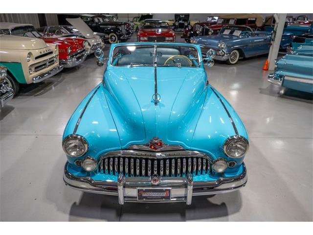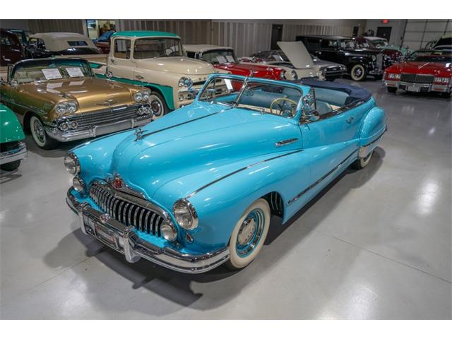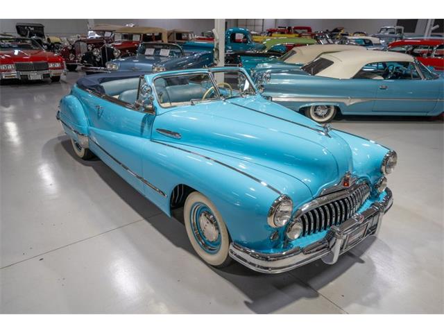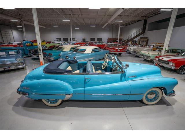 This 1947 Buick Super Convertible is a beautifully restored convertible that is equipped with numerous desirable options! Coming out of World War II, the American automakers were coming out of a time period where auto manufacturing was stopped due to the War effort. As such, the first few years of post-war production the styling resembled the pre-war style since the American manufacturers had yet to redo their tooling and manufacturing process to accommodate new post-war styles. In other words, the immediate post-war models were essentially jazzed up versions of 1942 models. In 1947, the Buick division of General Motors offered three distinct model lines, the entry-level Series 40 Special, the top-of-the-line Roadmaster, and, what was touted as somewhat of the best of both worlds, the intermediate Series 50 Super. Sitting on a longer wheelbase than the less-expensive Specials while sporting a more economical engine of the Roadmaster, the '47 Buick Super was a smashing sales success for the GM marque. In fact, Buick had a great year in 1947 sitting in fourth place among American car manufacturers and making up 7.5% of automotive production. Despite being the second most expensive body style in its respective Series, Buick actually produced the most convertible models of any American automaker in 1947. For the reasons mentioned previously, 1947 Buick style remained similar to the 1942 and thus 1946 models. The most noticeable difference between the 1946 Buicks from the 1947 Buick models was a style change in the grille, with the '47 grille was now stamped and featured a separate upper chrome bar and new emblem. Although Buick sat below Cadillac in GM's hierarchy, the Supers came equipped with a number of high-end luxury options such as hydraulically-powered seats, windows, and convertible tops. In total, Buick produced a total of 28,297 Super Convertibles which makes this particular '47 Super Convertible a model seldom seen today. Under the side-opening hood on this '47 Buick is a 248 Cubic Inch "Fireball" Straight 8 cylinder engine fed by a single 2 barrel carburetor that together were said to have produced 110 horsepower when new. The 248 Fireball Dynaflash Inline 8 is backed by a 3 speed manual transmission that is shifted via a column-mounted "three-on-the-tree" shifter. Exhaust exits via a single tailpipe capped with a chrome exhaust deflector. This Super Convertible is loaded with options! Dual outside chrome mirrors are always a welcome addition to a collector car of this vintage since they make maneuvering in and out of a tight garage stall or into a tight spot at the local car show much easier. This 1947 Super also comes with dual outside spotlights which are another novel option on a classic Buick. A pair of auxiliary driving lights further improve visibility during nighttime driving. Riding on a set of wide whitewall bias-ply tires on color-matched steel wheels capped off with chrome Buick hubcaps and beauty rings this '47 Buick Super has a fantastic look cruising down the road. The rear tires are tucked behind a set of color-matched fender skirts further adding to the iconic post-war look of this Buick. The blue cloth power convertible top is in fantastic condition and it goes up and down with the simple push or pull of a knob located under the dash. When down, the convertible top tucks neatly under a matching dark blue cloth boot. The exterior chrome and brightwork, including the optional front and rear bumper guards, are in fantastic condition and add to the upscale look of this 40s luxury automobile. The exterior has been refinished in a beautiful Cambridge Blue paint that completes the exterior look of the car. The interior of this '47 Buick Super Convertible is gorgeous! The front and rear bench seats have been reupholstered in a beautiful Blue and Ivory vinyl and the front bench is easily adjusted via a power switch. The matching door panels, blue carpeting, color-matched painted dash, and steering wheel are all in fantastic condition and appear to retain a nice stock look. The driver's and passenger side windows are both powered, going up and down with the simple flick of a switch. The instrument cluster is outfitted with a 120 MPH speedometer, battery gauge, temperature gauge, oil pressure gauge, and fuel gauge. The color-matched dash is finished with a Sonomatic AM radio with integrated speaker, clock, and locking glovebox. Whether you're adding to an existing collection on Buicks or you're buying your very first classic car, this 1947 Buick Super Convertible would make an excellent addition. Give Ellingson's a call today at 763-428-7337! *248 Cu. In. "Fireball" Straight 8 *Single 2 Barrel Carburetor *3 Speed Manual Transmission *110 Horsepower *Wide Whitewall Tires w/ Beauty Rings & Hubcaps *1 of 28,297 Convertibles Produced *Dark Blue Cloth Power Convertible Top *Cambridge Blue Exterior *Blue & Ivory Vinyl Interior *Power Windows *Stock Instrumentation *Odometer Reads: 26,242 Miles