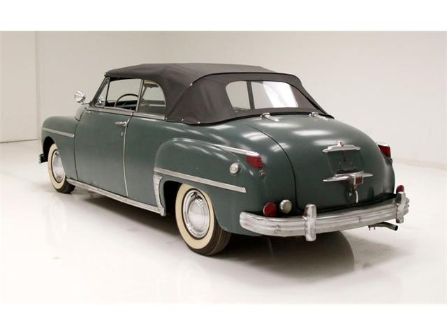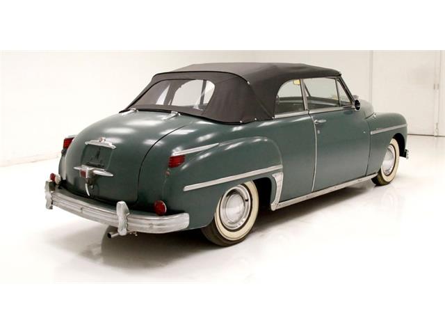 1949 Plymouth P18 Special Deluxe Convertible Old cars have gotten a bad reputation lately as being a rich man's game; news reports and TV shows depicting cars passing over the auction block for literally millions of dollars can easily put that impression in peoples' heads. Happily, like so much of what passes for ''reality TV'' and ''news'' these days, most of it is orchestrated hokum, and an example of the bank-draining insanity that can happen when you have a live camera trained on you. When you say 40's cars you think of post war pent up spending, but if you look at the pre Jet Age, before those fine finned beauties, you'll see enough has changed in our cars nearly 70 years on that these machines manage to feel vintage-they transport you to another era. We also need to look at the word ''Deluxe'' which was used by virtually every car manufacturer at one point or another. This car oozes ''Deluxe'' in many ways, like its design, embellishments, interior chrome, and curved lines. All affordable, and a real piece of vintage iron,in need of some TLC coming from long term indoor storage and now in our overstuffed Hallowed Halls. Now that's Deluxe in the flesh, a 1949 Plymouth P18 Special Deluxe convertible. NO TITLE-SOLD ON A BILL OF SALE ONLY Exterior This snazzy design harkens back to a simpler time and can best be described as a presentable example with dull but intact paint and shiny chrome embellishments. Its nose utilizes a mild V formation in triplicate plus 1 for the grille, and a bumper below that is showinglight tarnish in this framing. Big wide integrated front fenders flare inward as they move from the door panels to the front where they meet in a peaked hood with a single spear racing back toward the windshield. All this and more steel is bathed in Kitchener Green. Inclusions, signs of body work and bubbling is noted in the finish putting this car into the category of a 20 footer. A split windshield fronts the newer tear free black canvas top which floats above the 2 doors this car has available for the passengers and we note a clear plastic rear window. All rocker trimmings are solid and shiny and support the slab sided doors on either side. The rear design of this car curves downward gracefully, and has a single V-shaped tail lightemanating from each rear fender with chrome trimmed spear on top and a curved bumper on the bottom. Nicely preserved big dog dish wheel covers are wrapped by wide white bias ply tires all around. Interior Knitted green broadcloth with smooth dark green vinyl bolsters and tops covers the front and rear benches. These present with some seam splitting, tears and light soiling. The bench in back is flanked by smooth dark green panels dressed with bakelite and chrome cranks. The door panels are covered in more dark green vinyl. They have some art deco inspired chrome as well as shiny chrome handles and cranks with cream bakelite escutcheons and knobs showing nicely on this dark green background. Up front, the full metal dash is finished in Kitchener Green and there are also plenty of beautifully chromed bezels and a horizontally mounted radio and central speaker cover that has shades of an old jukebox. Another small curved chromed panel hangs below the dash, and houses more bakelite knobs. This dash is very inspiring and clean,but the chome does present with somepitting. The Kitchener Green also shows up on the door sills and center framing for the windshield. Tan carpet floats this Art Deco interior and a big cream bakelite steering wheel is fronting the dash and it also has plenty of chromed embellishments. Drivetrain Among all the other niceties this car offers up, is an unrestored appearing engine bay with a 218ci L-head inline 6-cylinder engine. Patina abounds on the black with a black painted oil bath air cleaning system above a 1-barrel carburetor and intake. On the back is a 3-speed manual transmission and a 3.90 geared rear axle turns the tires. Undercarriage The X frame is riddled with patina and surface rust but remains solid structurally. Rockers and floor pans are stamped steel and show repair panels for the flooring. Independent coil spring front suspension and leaf spring rear is on, and drum brakes are seen all around. We note a new full single exhaust system has recently been installed. Drive-Ability Some TLC will be in order before ignition is achieved, as with any car out of long term storage. We do note the engine turns by hand Plymouth built solid cars to last in the day, and this car upholds that theory. Bulletproof construction which was built to last and with all the chrome add ons it was sure to be a looker, and it is! Rounded fenders and hood, and a clean interior and we are looking really good with this example. NO TITLE-SOLD ON A BILL OF SALE ONLY Classic Auto Mall is a 336,000-square foot classic and special interest automobile showroom, featuring over 850 vehicles for sale with showroom space for up to 1,000 vehicles. Also, a 400 vehicle barn find collection is on display. This vehicle is located in our showroom in Morgantown, Pennsylvania, conveniently located just 1-hour west of Philadelphia on the I-76 Pennsylvania Turnpike. The website is www.classicautomall.com and our phone number is (888) 227-0914. Please contact us anytime for more information or to come see the vehicle in person.