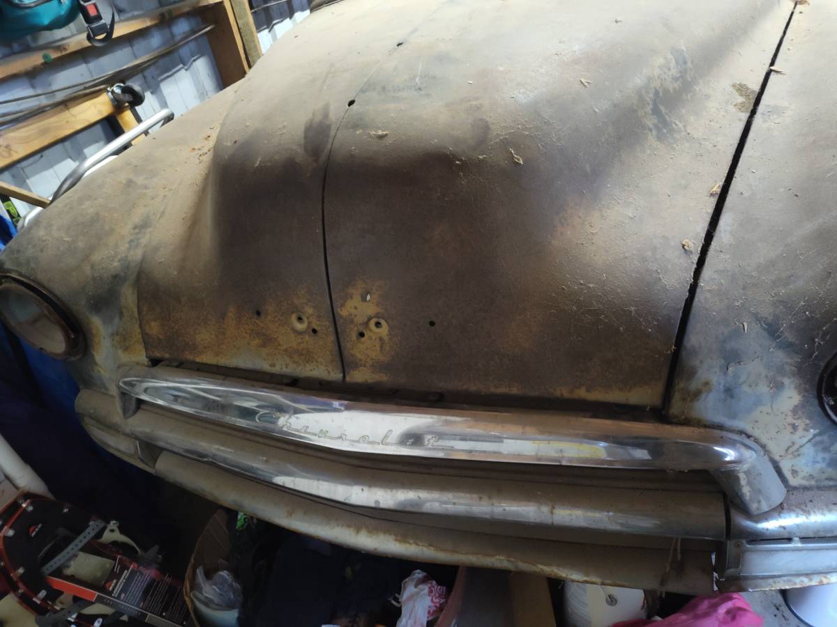 1952 Chevy fleetline 2-door. Most of the trim pieces are laying inside the car. The body is fairly solid but has some rust. All the glass is there except the vent windows are cracked and one of the side windows has a crack at the bottom. I believe the motor is seized. I have had it over 10 years and have done nothing with it. It's as I got it. Clean title in hand. Cash only. Let me know if you have any questions.Vehicle