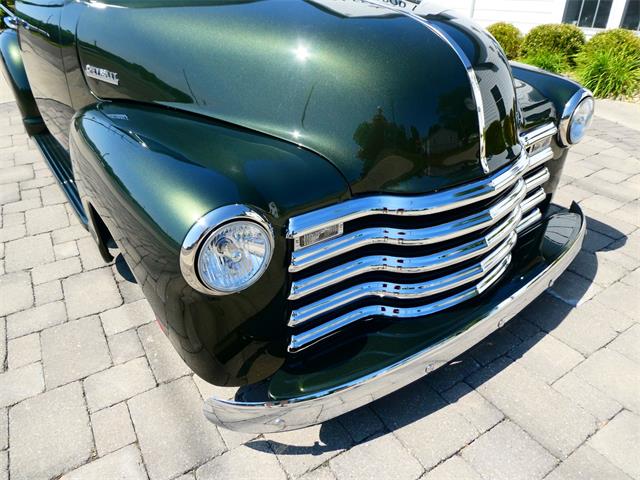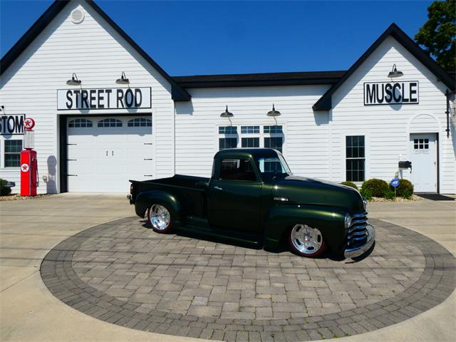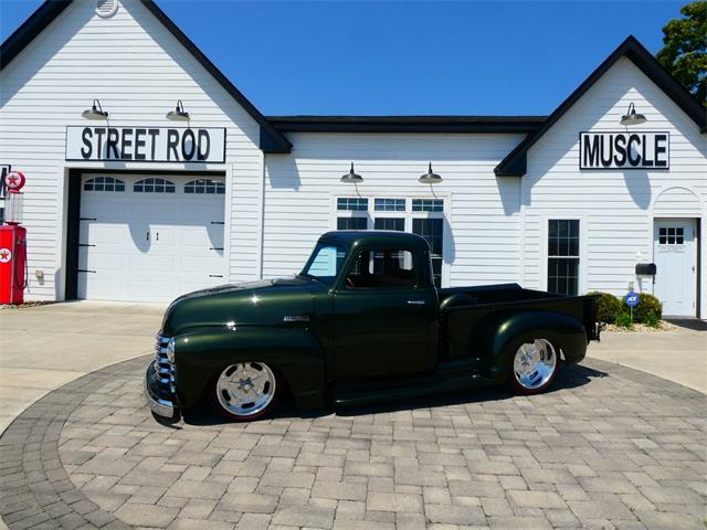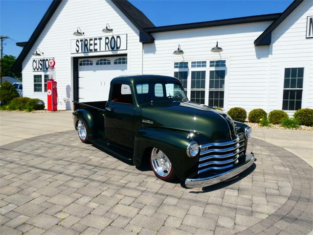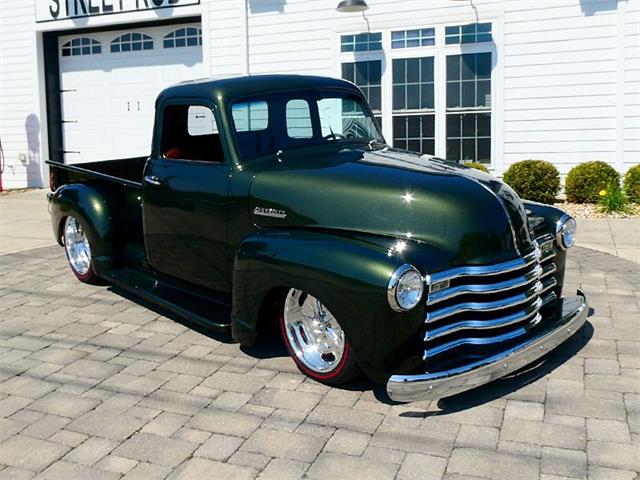 1953 Chevrolet 3100 Custom Pickup Check out this amazing new custom built 3100 Chevrolet Pickup! Nut and bolt frame off build with only test miles. Finished in Rainforest green with one piece front windshield and new door glass. LS Fab Chevrolet Billet grille. Altman door latches and new door regulators. You'll never own a truck that doors shut and line up so nice! The bed is finished in a Beachwood stain and satin clear coat finish. All new chrome and stainless around. The truck is powered by a 5.3 LS fuel injected V8 engine. All new wiring from front to back. Burnt Bronze Cerakote Chevrolet script Holley coil pack covers. All American billet serpentine belt system. Transmission is a 4L60 auto 4-speed overdrive. Truck rides smooth on adjustable coilovers and power rack and pinion steering. Mustang II independent front suspension with tubular A-arms. Fully boxed chassis painted in gloss black. Quick Performance 9-inch rear axle. Wilwood 4-wheel disc brakes around. Fuel tank removed from cab and relocated to bed with EFI fuel tank and pop up gas filler. The beautiful interior is finished in luggage tan with tilt steering and hand stitched leather steering wheel. Custom seats with perforated leather and French seams. Dakota digital gauges. Lokar shifter. Truck rides on Diamond back Redline tires and custom two piece forged US Mag wheels. Price $169,900