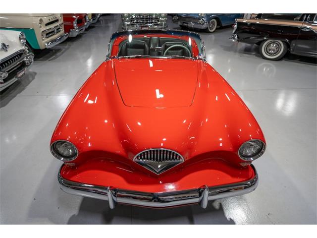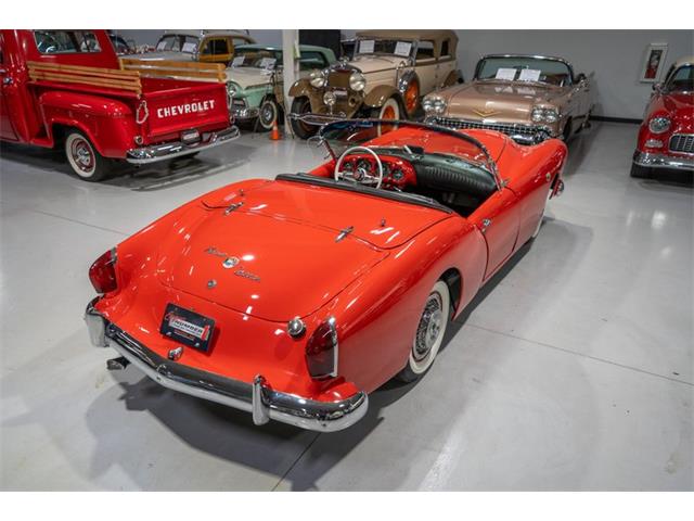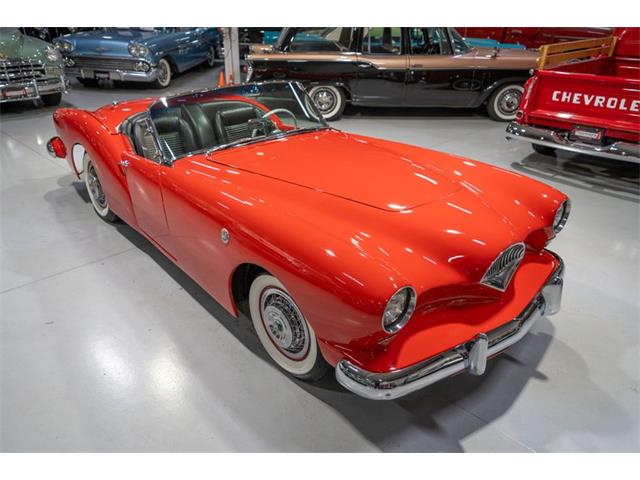 This 1954 Kaiser Darrin Sports Roadster is a gorgeous American sports car and is ready for some serious summer cruising. In order to win World War II, the United States ceased all automobile production to assist in the War effort. After emerging victorious from WWII, the US automotive industry was once again permitted to produce cars but the early post-war American-made cars were essentially the same pre-war designs, spruced up with new trim and other superficial gimmicks to appear "new" the American public. Since Kaiser was founded after the War, it was immediately able to offer its vehicles with brand-new designs, selling approximately 70,000 new units in its debut year. But by 1949, the Big Three Detroit automakers, General Motors, Ford, and Chrysler, had caught up to Kaiser's head start and the Big Three were able to sell their new-look cars at far bigger discounts than Kaiser-Frazer could have possibly offered. Unable to compete with the Big Three Henry J. Kaiser's (a famed American shipbuilder and industrialist) and Joseph W. Frazer's (a notable American automotive industry executive) joint venture was in such a dire financial situation that it was ultimately bailed out by the federal government. In an attempt to reinvent itself, and using the federal bailout funds it had received, Kaiser debuted the Henry J which was an affordable car for the "every man." Another way Kaiser sought to turn around the company was by re-hiring famed automobile designer, Howard "Dutch" Darrin, who had spent time and gained notoriety designing bodies at Cadillac and later at Packard, and who initially worked in the early years at Kaiser-Frazer as a Design Consultant. However, Darrin's first stint at Kaiser-Frazer was not as harmonious as was hoped, and Henry Kaiser actually fired Darrin (only later to re-hire him in 1951). Darrin's first order of business in his second stint at Kaiser was creating a 2-door roadster prototype, a body style that just on the horizon at some of Kaiser's competitors, such as at Chevrolet with the Corvette and at Ford with the Thunderbird. The resulting car featured a fiberglass body and built on the Henry J chassis. Due to the novel design and methods used on Darrin's fiberglass roadster, the car was ultimately displayed all over the country and the car was placed into production in the 1954 model year. Built on the 100 inch Henry J chassis, the all fiberglass body was gorgeous with beautiful body lines and perhaps most famously, was outfitted with sliding doors that tucked into the front fenders of the car. Even though the Kaiser Darrin was an incredibly beautiful design with unique design elements, it was a total flop for the struggling Kaiser-Willys (as it was now known) and total sales reaching a mere 435 units. Due in part to the commercial failure of the Kaiser Darrin, Kaiser-Willys stopped its US operations in 1955 with over $100 million in losses and meager sales figures, especially compared to the company's early years. Due to its incredible design and very low production the 1954 Kaiser Darrin remains one of the most collectible American made automobiles of all time with only a handful examples trading hands in recent years. This particular example comes to us from a southern-based collector who took great care of this iconic automobile. Under the hood on this '54 Kaiser Darrin is a 161.1 Cubic Inch "Hurricane" F-Head Inline 6 cylinder engine paired with a single barrel carburetor that together were said to have created 90 horsepower when new. The 161 Hurricane 6 is backed by a 3 speed manual transmission with overdrive which makes this American sports car a blast to drive. Exhaust exits the Kaiser F-Head engine via a single exhaust setup that generates a nice throaty sound out the rear tailpipe. Riding on a set of wide whitewall tires on steel wheels tucked behind Wire wheelcovers with Kaiser emblems, this '54 Kaiser Darrin has a great look when parked or while cruising down the road. The black vinyl 3-position convertible top is accented with chrome landau bars, and it is manually operated and appears to be in fantastic shape. The chrome and brightwork around the exterior of this Kaiser Sport Roadster looks great as well and looks to be complete. The fiberglass body has been correctly refinished in beautiful Red Sail paint completing the stand-out look of this Darrin. The interior of this 1954 Kaiser Darrin Sports Roadster is absolutely gorgeous! The bucket seats have been correctly reupholstered in Black vinyl. The iconic sliding doors work great and are backed by matching black vinyl door panels and topped with plexiglass wind deflectors. The black vinyl padded dash, black carpeting, and steering wheel are in wonderful condition and all appear to remain in their stock configuration. The instrument cluster is outfitted with a 120 MPH speedometer, 6,000 RPM tachometer, temperature gauge, battery gauge, oil pressure gauge, and gasoline gauge. Whether you're adding to an existing collection of American classic cars or you're buying your very first classic car, this 1954 Kaiser Darrin Sports Roadster would make an excellent choice. Give Ellingson's a call today at 763-428-7337! *161.1 Cu. In. "Hurricane" F-Head Inline 6 *Single Barrel Carburetor *90 Horsepower *3 Speed Manual w/ Overdrive *Wide Whitewalls on Chrome Wire Wheels *Southern History *1 of 435 Kaiser Darrins Produced *Correct Red Sail Exterior *Black Vinyl Bucket Seats *Black Vinyl 3-Position Convertible Top *Stock Instrumentation *Odometer Reads: 2,056 Miles