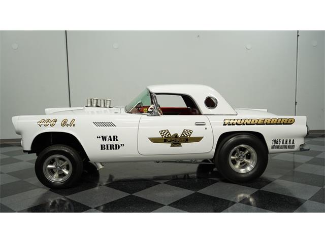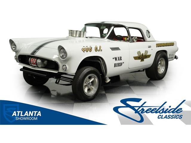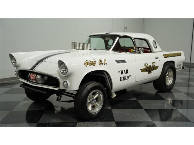 Transformed into a Warbird Gasser replica, this 1955 Ford Thunderbird stands as a striking example of classic design fused with drag racing spirit. This full fiberglass car, a characteristic reminiscent of real gassers seeking to minimize weight, is painted in a sleek white, showcasing its dynamic and aggressive stance. The vehicle features gasser-specific elements like exhaust cutouts, a front bumper delete, and ladder bars with leaf springs. While it is far from a typical Thunderbird, this replica retains a sense of luxury with leather seats and power windows, unusual for a dragstrip car, hinting at its dual purpose for both show and occasional cruising. Underneath the hood, the Thunderbird houses a formidable 406 CI V8 engine, a bored-out version of the original 400 CI, equipped with Chevrolet "turbo" angle plug heads that are fully ported. This powerplant is matched with a 700R4 4-speed automatic transmission, providing a blend of performance and ease of driving. The engine breathes through a Holley 750cfm carburetor topped with a "Garlits injection" cover, giving it the appearance of a Hillborn style injection. The vehicle also features homemade headers leading to a dual exhaust system, enhancing its auditory and performance appeal. The suspension setup includes 56-62 Corvette front spindles and a Speedway motors front axle and springs, paired with a Mopar B Body 8 3/4 rear axle. Highlights o 406 CI V8 engine with Chevrolet turbo angle plug heads o 700R4 4-speed automatic transmission o Holley 750cfm carburetor with Garlits injection o Full fiberglass body in white o Gasser-specific features like exhaust cutouts and front bumper delete o 14" front and 15" rear wheels with Mickey Thompson Challenger tires o Red leather bench seating o Power windows This 1955 Ford Thunderbird Warbird Gasser Replica is a unique blend of classic Americana and drag racing culture. With its powerful V8 engine and a host of gasser-inspired modifications, it offers an exhilarating driving experience that's not just limited to the track. The blend of performance-focused features with unexpected comforts like leather seats and power windows makes it an intriguing choice for enthusiasts who appreciate both showmanship and functionality. This Thunderbird Gasser replica is not just a vehicle; it's a statement on wheels. Call today!