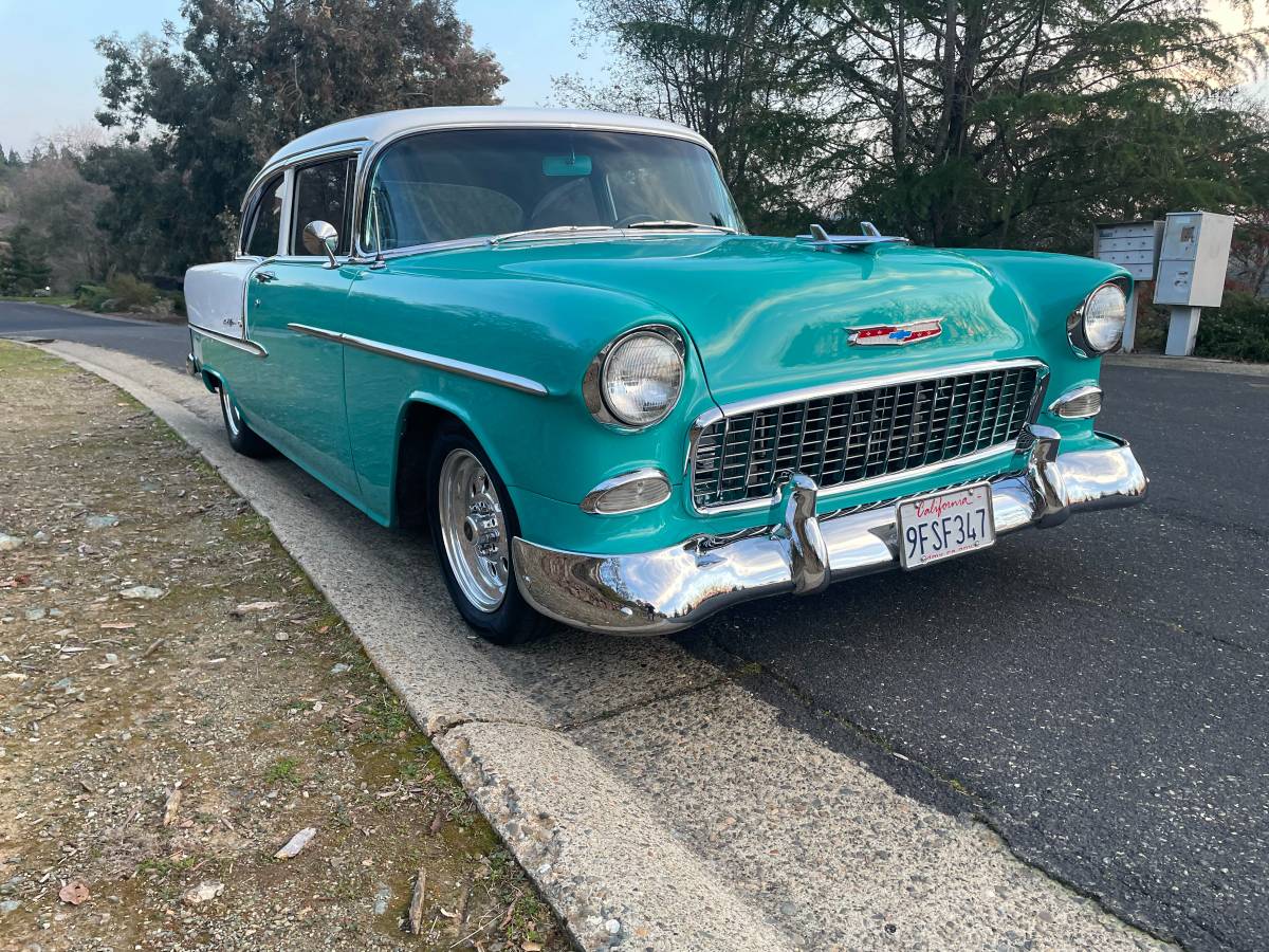 1955 chevy Belair, 2DR, Sedan, 327/400 automatic, AC, P steering, P Brakes, P Windows, Tilt Wheel, Very straight Body, Paint is a 10 and Interior is a 10. LA Built, calif car. ** Runs and drives Excellent. ** NO RUST ** Smooth and comfortable ride, 11 inch tires on rear, Body has notd been cut, NO RUST !! Thank you for looking, Please call or text 916--7-one--two--39--one--six ** CAR IS LOCATED NEAR SACRAMENTO CALIF. ** ford, mustang, chevelle, nova, corvette, impala, camaro, 1932,1933,1934,1936,1939,1940,1948,1949,1950,1952,1953,1954,1956,1957,1958,1959,1960,1961,1962,1963,1964,1965,1966,1967,1968,1969,1970,1971,1972,1973,1974.