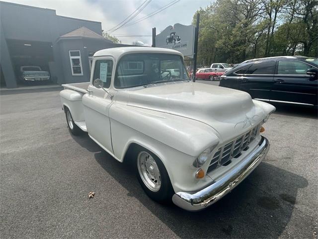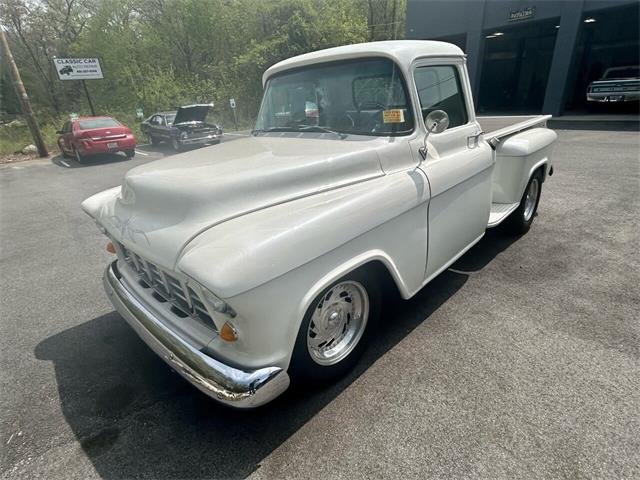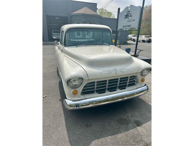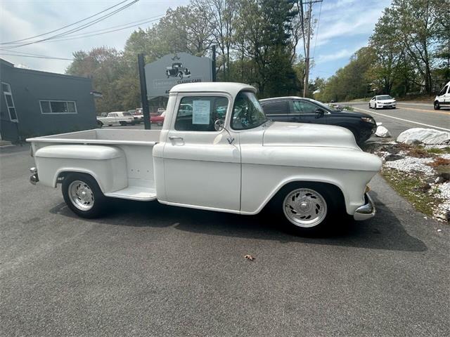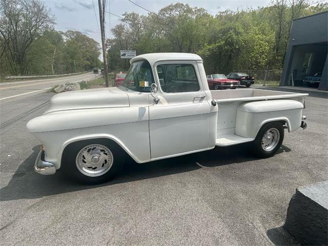 Metallic Pearl White 1956 Chevrolet 3200 long bed, 350 cubic inch. Step side. Wood bed. New dash with AutoMeter Gauges. Tilt Billet steering wheel. Classic Centerline wheels. Michelin 245/75 R17 all around. Custom Power steering and brakes. Air conditioning. Mustang-II front end. Custom pinstriping on the hood and black lettering on the tailgate. An incredible pickup. 3,700 miles since total restoration. The photos tell it all! A must see. The vehicle has been serviced by professional mechanics. Prices are cash price and firm. Documentation fee $399 is not included in price. We accept trade-ins. We can take care of your registration. Please call to schedule a test drive!!! Smithfield Classic Cars & Auto Sales 278 Douglas Pike Smithfield RI 02917 Monday-Friday 9am-4pm | Saturday 10am - 4pm 401-227-9548 www.smithfieldclassiccars.com