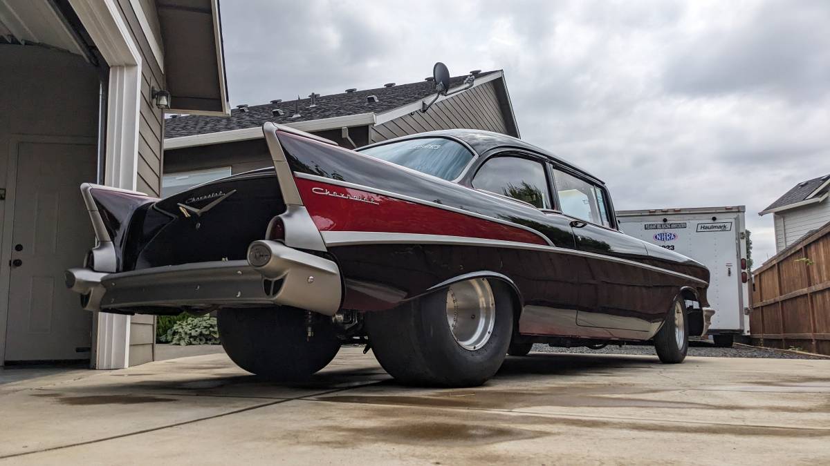 Here's your chance to own a piece of History and the car you have been rooting for almost 30 years. Owned, built and driven by our local Machinist and Premier engine builder for all things Motorsports- Bob Drummond Machine. As retirement sets in, driving the car has become " watching the new owner drive it and love it as much as I do ". This is not your garage built thrown together car on limited funds. This is the result of many Local Hot Rodders and Nationally accredited Drag Racers putting together what it takes to make a safe, fast and reliable drag car wrapped in a beautiful custom painted 1957 Chevrolet. Consistant Throttle stopped 9.4 second car that would run in the 8's if you wanted. Has all door seals, glass etc. Don't miss this. The enclosed race trailer and nearly 30 years of parts come with this package. You couldn't build this car for double the asking. The pictures tell the story, but here is a few of the highlights. Engine: 498 cid BB Chevrolet Lunati fully counter weighted and balanced blower crankshaft Eagle Pro Mod Rods with L-19 bolts JE 13-1 Pro balanced pistons Dart 320 Heads with Pro Mod ports and Dart Factory porting Manley severe duty valves Manley Next-Tech springs with titanium retainers Manley heavy duty Push Rods Ultradyne roller camshaft Murell bushed lifters Jesel belt drive T &D shaft rockers Moroso oil pump Stef's aluminum drag race oil pan Edelbrock Victor 464R intake and 1050 Dominator Mezeri electric water pump Aluminum radiator with fan 100amp Alternator ATI internal balanced dampener and flex plate Flex plate shield and trans shield both SFI approved Custom-coated headers 4500 stall Built Turbo 400 with trans brake, solid input and output shafts- professionally built for 1000hp plus Steel driveshaft Dana 60 rear narrowed with spool, strange 35 spline and 4:56 gears. Drum rear Rear sway bar Wheelie bars quick disconnect 57 center chassis, reinforced, narrowed rear and all tube front. Chassis will certify to 7.50 Front and rear QA1 fully adjustable, currently a proven set up Wildwood disc brakes Flaming river rack and pinion Front tires are front runners DS2 Moroso 4 1/2x26 Rears 14 1/2x 32 Toyo Pro lite and Centerline wheels Electronics: MSD 7AL with 3 step and rpm switch. Biondo Mega 450 delay box. Biondo dual cylinder throttle stop. Dedenbear CO2 for throttle stop and shifter. Cheetah SCS shifter Distributer by Jim Robinson Distributers Custom paint and airbrush by Rob Drummond All Genuine Steel GM body with glass good and front bumper. Title clean and used to be licensed for the street. Would make a vicious Outlaw
