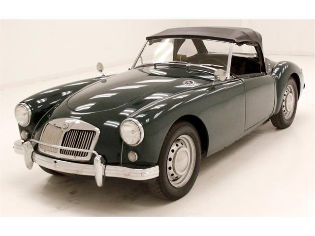 1958 MG MGA Roadster The MGA is a sports car that was produced by MG from 1955 until 1962. The MGA replaced the MG TF 1500 Midget and represented a complete styling break from MG's earlier sports cars. Announced on 26 September 1955 the car was officially launched at the Frankfurt Motor Show. A total of 101,081 units were marketed through the end of production in July 1962, the vast majority of which were exported. 5869 cars were sold on the home market, and the MGA was replaced by the MGB. A new chassis was designed with the side members further apart and the floor attached to the bottom rather than the top of the frame sections. A prototype was built and shown to the BMC chairman Leonard Lord. He turned down the idea of producing the new car as he had just signed a deal with Donald Healey to produce Austin-Healey cars two weeks before. Falling sales of the traditional MG models caused a change of heart, and the car, initially to be called the UA-series, was brought back. As it was so different from the older MG models it was called the MGA, the "first of a new line" to quote the contemporary advertising. There was also a new engine available, therefore the car did not have the originally intended XPAG unit but was fitted with the BMC B-series engine allowing a lower bonnet line. The MGA convertible had no exterior door handles, however the coupe had door handles. For consignment, a restored in the 1990's small cruiser with its British Motor Industry Trust certificate, workshop manual, and a phonebook's worth of restoration receipts and photos, all in 1958 MGA roadster form. All correct on the chrome and body front, coming with its side curtains, a nice convertible top, a wonderfully tasteful interior black coloring accenting the classic British Racing Green color change exterior, and 1958 never looked so good! Exterior The MGA was a big step forward for the British automaker and somewhat shocking to MG fans around the globe. Our example, the second to last year for the MGA 1500, continued to stun crowds with its persuasive yet delicate flowing lines all bathed in a nicely applied color change application of British Racing Green that is showing well to this day with a few stone chips, scuffs, and scrapes. Starting up front with the raked back waterfall style grille which melts its way into the rounded peak fenders with their chrome bezel headlights we arein late 50's English bliss. Just below this steel and chrome artwork is a clean bumper with added bumperettes. Moving down the sides, a swooping body line melts into the highly arched rear fenders creating a soft Vee shape that keeps eyes drawn and hearts pounding. These sides, devoid of all chrome and trimmings save for the front quarter top venting, achieve artistic perfection with the sculpted lines as they frame the restored gray drilled wheels and blackwall rubber in 15-inch format. A black vinyl top with clear plastic windows and additional side curtains are present and accounted for in case you hit a spot of inclement weather. We do note areas of tearing in the top, but they are slight and do not require a full top replacement at this point. On the back is the rear curved bumper stretching from fender to fender with its near perfect bumperettes, oval tail lights, and chrome MG badge gracing the trunk lid. Interior Reaching in and pulling the door release strap we are greeted with a bit of unexpected niceties in the form of black leather tuck and roll low back bomber style bucket seats with a hint of wrinkling to the upholstery and the handbrake tucked neatly between the passenger's seat and thickly padded center hump. An oak eyebrow curved dash, also draped in black sports a litany of gauges which pepper a black leather curved panel along with the heater controls, and MG badge over wood in front of the passenger. Our consignor notes that the original metal dash face plate is included with your purchase. This is fronted by a black rimmed banjo style 4 spoke steering wheel. Black leather covers the simple small doors, and each offers up some pouch storage and the chromed retainers for the side curtains. Deep black carpeting with very little wear floods the floors and a rear storage area all looking so inviting and beckoning me to feel its softness. Drivetrain A flip of the long swooping hood reveals a nicely restored 4-cylinder red painted engine block in rebuilt1489cc configuration. This mill is fed by 2 SU's which are semi downdraft carburetors. There is a 4-speed manual transmission attached to the back and a 4.30 rear axle way in back. The engine bay is very well done with just a light dust coating of patina. Undercarriage All straight structural steel is underneath and makes up a clean undercarriage displaying just minor road dirt, patina and some surface rust. The wood floor pans are strong and solid with black paint applied, meanwhile the side rockers and unibody are nearly like new, but we note a few amateur welded in repairs on the rear of the rockers. For the suspension, independent coil springs are up front, and leaf springs for the back and drum brakes front and rear are on for the whoa factor. Drive-Ability I never miss a chance to pilot a British sports car and this one spoke to me dearly as it's the fourth of its kind to ever grace our Hallowed Halls. A quick starter from the starter pull, and after a nice warmup it ran incredibly smoothly and had great snappy pickup. It handled well and just the open road feel of this car is worth the price of admission. All was working swimmingly and my suspicions were correct, the deep plush black carpeting felt wonderful. An older restoration job holding up just well today, this car presents in nice shape as a driver, but with some very minor work can be taken to the next level and be a top flite show winner. It has a beautiful look with the classic racing green paint, and black vinyl top with the luxurious black hued leather interior. Mechanically it is sound, and we are talking