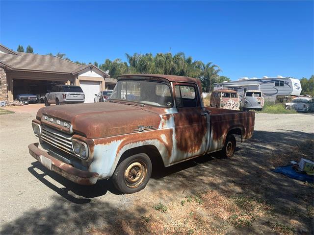 1959 Ford F100 short bed fleetside For Sale -Very solid California truck -292 V8 and column shift manual transmission -Been off the road for 30+ years -Very complete with all of the interior, and what appears to be the original drivetrain down to the air cleaner -Perfect candidate for patina build or high dollar resto-mod! -Clean California title -Located in Escalon, CA 95320 -Call or text Tony @ 50five-50three-327four -Asking $12,900Vehicle