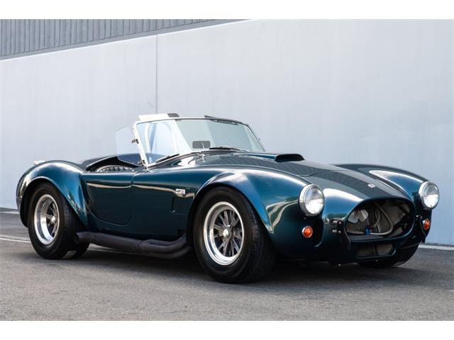 This Shelby Cobra 427 is an aluminum-bodied example of the CSX4000 continuation series that was completed in 2000. The car is finished in metallic teal and features side pipes, 15? Halibrand-style knock-off wheels with AVON Tires, Wilwood disc brakes, coilovers, and more. Power is from a 468ci side-oiler V8 fitted with aluminum cylinder heads and a single four-barrel carburetor, while the original four-speed Toploader manual transmission was replaced with a Tremec TKX 5 Speed Manual is paired with a 3.54:1 Salisbury rear end. The Shelby Cobra aluminum body is finished in metallic teal blue, and formerly featured white stripes. Details include a riveted hood scoop, black side pipes, quick-jack brackets, and a chrome driver's roll hoop. Low-backed bucket seats are trimmed in black and feature Simpson latch-and-link lap belts. The wood-rimmed steering wheel rests ahead of a vinyl-covered dash signed by Carroll Shelby with Smith's gauges. A Shelby American dash plate shows this Shelby Cobra as #CSX4188. Service in 2017 included refurbishment of the radiator, fuel cell, steering shaft, and electrical connections, as well as replacement of the springs, oil lines, and other items. Another service in 2022 included swapping the original 4-speed transmission with a new TKX transmission, Rebuilding the Carb, New Battery with Ground Cables and Battery Cut Off Switch, and standard service, including oil change, spark plugs, tuning, etc. Shelby Cobra CSX4188 has 7,228 miles, is titled as a 1965 Shelby in Florida, and is available for $339,950.