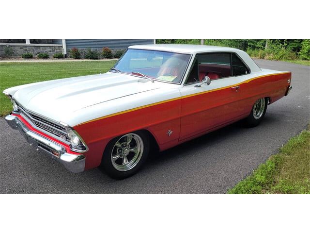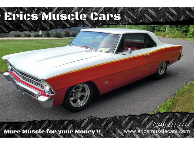 Eric's Muscle Cars is proud to offer this Beautiful 1967 Pro Street Chevy Nova SS ! Powered by a wicked 406CI SBC, 509 block with 11:1 forged pistons, Dart Pro1 Aluminum heads, Duntov 30/30 cam, approx 550 HP, Aluminum radiator, Muncie M20 4 speed, Ford 9 inch rear 370 trulock posi, 31 spine, 15 gallon JAZ fuel cell mounted in trunk, TCI front clip with power rack and pinion steering, full frame car, ladder bar 3 link rear, fully tubbed, Coil over shocks on 4 corners, 4 wheel disc brakes front and rear. American Racing Torq Thrust rims with new radial tires, Dakota Digital dash, full custom interior, including trunk. Heat and wipers work as do all lights. AM/FM retro sound radio with Aux port, No rear seat, but there is room for one if you should decide you need it later. No expense was spared on this restoration! Watch the Video !