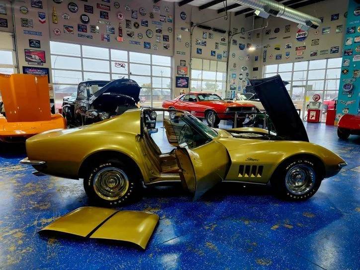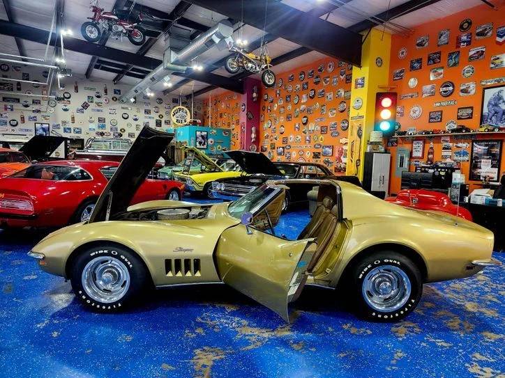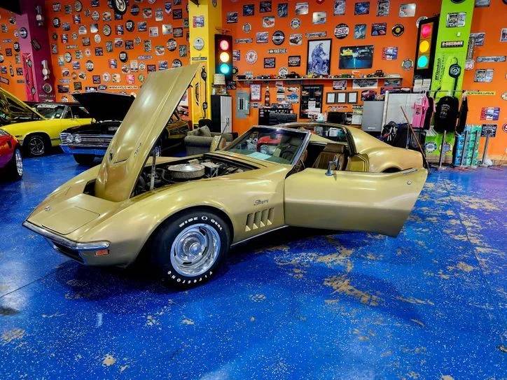 CLASSIC 405 MOTORS PRESENTS THIS UNRESTORED 427 CORVETTE 1969 Chevrolet Corvette 427 CI 390 HP 4 speed manual transmission. 79,000 miles. Tilt/Tele steering wheel, AM/FM Radio for options. Car has never been messed with and has had very little work done to it over the years and never been worked on by the wrong people. It even has the original air pump on the engine which you never see. It's all there. This was a 2 owner car with the 2nd owners buying it from the original owner in the mid 1970's before we bought it recently in 2023. All the engine, transmission, differential numbers have been recorded and identified, they are all original to the car besides the passenger side cylinder head, looks to be replaced at sometime in its life, that head is still the same year as the original just has an E month code instead of an H. It does run and drive, but the engine is not good enough to drive it for long periods, just for moving the car when needed or short in town drive. When taken for a short drive down the road, the transmission, differential, suspension, and other moving parts seem to actually work pretty well yet. Car is very solid underneath and has all original body panels on it as well. There was a very minor hit on the left rear bumper at some point in the past resulting in a 6-8” crack in the fiberglass above the drivers side rear valance. You have to lay on your back to even see the crack, and it could be easily fixed with no panel replacement. Other than that it is a no hit body. All original corvettes in this condition are very tough to find these days, especially for a 1969. This is a very solid car that would be a great candidate for NCRS original class entry. priced at $53,900 WE ARE A SMALL TOWN FAMILY OWNED CLASSIC CAR DEALER NEAR OKLAHOMA CITY AND WE ARE ONLY 10 MINUTES FROM WILL ROGERS WORLD AIRPORT . come see us today at 780 west hwy 152 Mustang Oklahoma 73064 visit us @ classic405motors.com FINANCING AVAILABLE WAC WORLDWIDE SHIPPING IS AVAILABLE