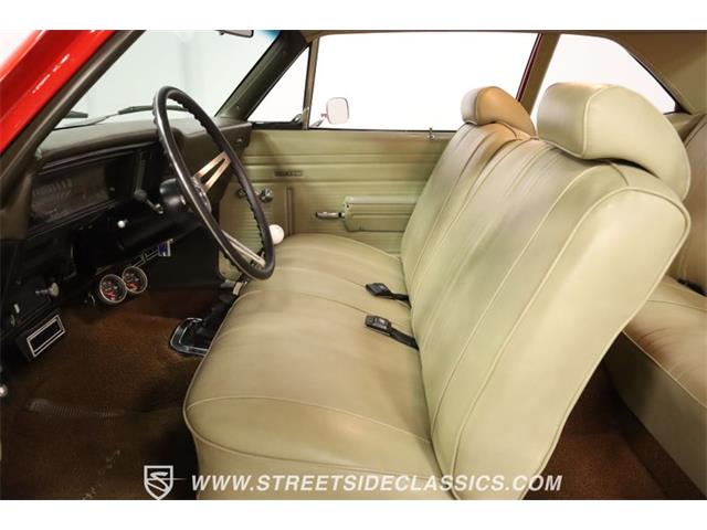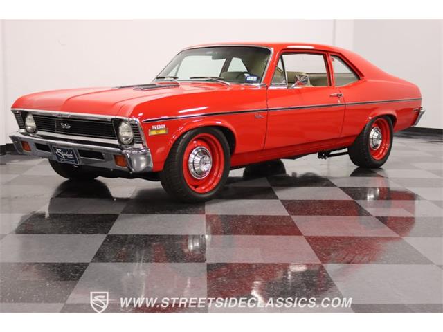 Glistening in resplendent red, this 1972 Chevrolet Nova SS 396 Tribute is a car that revolutionized the muscle car landscape. Its exterior is a striking example of classic muscle, featuring 17-inch steel wheels adorned with dog dish hubcaps - a subtle homage to old-school sleepers and Yenko cars, painted to match the car's bold red hue. From impeccably polished chrome bumpers to precise emblems and glasswork, every aspect of this Nova's exterior has been meticulously restored. Inside, this Nova welcomes you with a discreet beige vinyl bench seat that beautifully encapsulates the essence of the '70s. Complementing the vintage vibe is a tilt steering column, while the dash houses Auto Meter Sport Comp gauges that provide precise feedback while maintaining the car's classic aesthetic. The Vintage Air heating and A/C system is seamlessly integrated to preserve the interior's original look while entertainment is provided by a vintage AM/FM/Aux radio, keeping the spirit of the '70s alive and kicking. Roaring to life with the raw power of a 396 V8 engine, it is nestled within a spotless and well-arranged engine bay, and pairs seamlessly with a robust 5-speed manual Tremec TKO600 transmission. Modern touches like MSD ignition, power steering, and power disc brakes at all four corners enhance the driving experience. Further augmenting its mechanical prowess are the tubular A-Arm front suspension and traction bars with Leaf Springs at the rear, ensuring a balance of performance and handling. The dual exhaust system with FlowMaster mufflers elevates the experience, providing that deep, resonant sound that is music to anyone's ears. Highlights: • 396 V8 Engine • Tremec TKO600 5 Speed Manual Transmission • Power Steering • Power Disc Brakes • Upgraded Suspension Components • Dual Exhaust with FlowMaster Mufflers • Vibrant Red Exterior • 17" Steel Wheels and Dog Dish Hubcaps • Covert Beige Vinyl Interior with Modern Amenities • Vintage Air • Auto Meter Sport Comp Gauges • AM/FM/Aux Radio This 1972 Chevrolet Nova SS 396 Tribute, a celebration of automotive history that's ready to offer the thrill of the muscle car era with the comforts of today. This Nova is a must-have. Call today!