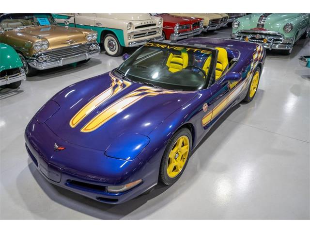 This 1998 Chevrolet Corvette Pace Car Edition is a nicely preserved lower mileage example sporting the iconic 1998 Indianapolis 500 Livery and is ready to be your next summer cruiser! When Chevrolet debuted its Corvette concept car at the New York City Motorama in the early 1950s, few would have expected that not only would the GM marque continue to produce the car for the next 75 years, but also that it would garner a reputation as being America's performance car. See in the early 1950s, Chevys were economical people movers and weren't yet thought of as offering stellar performance on the racetrack. As Corvette production moved into the middle of the 1950s, Chevrolet added a V8 engine along with a manual transmission option and the Corvette would start building its performance-oriented legacy and started to establish itself as a true competitor to the European sports cars that it was originally meant to compete against. Into the 1960s and 70s, Chevrolet had sold thousands of its wildly popular, performance-oriented Corvette but for whatever reason, it never served as the Pace Car at the Brickyard for its famous Memorial Day race. That all changed in 1978 when the Chevrolet Corvette was chosen as the Official Indianapolis 500 Pace Car and to commemorate that accomplishment, the Chevy even sold a limited edition Pace Car Replica sporting the iconic black and silver Indy 500 livery. In 1986, the Corvette was once again selected to pace the racers in Indianapolis and, interestingly, the actual '86 Corvette Pace Car was the first street legal Indy 500 Pace Car since the 1978 Corvette that paced the 62nd 500 Mile International Sweepstakes. The Corvette was chosen as the Indy 500 Pace Car yet again in 1995 and it was driven by famed Indy 500 racer Parnelli Jones. The fourth Corvette model to serve as the Indianapolis 500 was the 1998 model, clad in Pace Car Purple with special Indy 500 decals. To commemorate the special C5 Pace Car, Chevrolet built an additional 1,163 Indy 500 Pace Car Edition cars in 1998 and they were available for purchase at through Chevrolet's dealership network. These Pace Car Edition Corvettes were offered with either a 4 Speed Overdrive Automatic transmission or a 6 speed manual. In total, only 616 were built with 4 Speed OD Automatic transmissions, which makes this particular Corvette a rare car that just about anybody can drive. This 1998 Corvette is believed to have spent the majority of its life down south and comes to us from a southern-based collector who took great care of the car. Powering this '98 Pace Car Corvette is a 5.7 Liter LS1 V8 fed by electronic fuel injection that together were said to have created 345 horsepower when new. The 5.7L LS1 is backed by a 4 speed automatic transmission with overdrive which makes this collectible Corvette an easy car for just about anybody to take for a spin around the block. Exhaust exits the LS1 V8 via a dual exhaust setup that gives this C5 Pace Car its iconic Corvette sound out the rear. Power is sent from the 5.7 Liter V8 to the rear wheels through a limited slip differential so that you can be sure that you'll be able to keep the rubber to pavement. Since this Corvette is a late model collectible, it comes loaded with tons of creature comforts. Squeezing into a tight parking space is a total breeze since this 1998 'Vette comes equipped with power steering. Steering is further assisted with the "Magnasteer" speed sensitive rack and pinion steering rack that makes it easier to take a tight curve at higher speeds. With power disc anti-lock brakes in all four corners, bringing this Corvette to a complete stop is also easy especially with all that horsepower under the hood. You'll be able to stay cool on the hottest summer days and warm on cool fall or spring nights since this '98 Corvette is equipped with dual zone air conditioning and heat. The black cloth convertible top is manually operated, easily by a single person, and it is in wonderful condition. Riding on a set of yellow painted cast aluminum wheels with 245/45ZR17 radial tires up front and 275/40ZR18 radials in the rear this Pace Car replica has an eye-catching look and fantastic ride cruising down the road. The exterior has been finished in Indianapolis 500 Livery consisting of Pace Car Purple basecoat/clearcoat paint and the special Indy 500 decals. The interior of this 1998 Chevrolet Corvette Pace Car Edition is absolutely stunning! The bucket seats have been correctly and recently reupholstered in gorgeous two-tone Black and Yellow leather and both are 6-way power adjustable seats. The black upholstered door panels, center console, carpeting, leather wrapped dash, and leather wrapped steering wheel are all in wonderful condition as well and appear to remain in the stock configuration. The instrument cluster is equipped with a 200 MPH Speedometer, 7,000 RPM tachometer, oil pressure gauge, temperature gauge, volt gauge, and fuel gauge, along with a display for the Driver Information Center (D.I.C.). The interior is also loaded with numerous desirable creature comforts including power windows, memory power seats, adjustable mirrors, and power door locks. With an AM/FM/CD entertainment system, you'll be able to listen to all of your tunes while cruising down the road. Whether you're buying your very first collector car or you're adding to an existing collection of classic Corvettes, this 1998 Chevrolet Corvette Pace Car Edition would make an excellent addition. Give Ellingson's a call today at 763-428-7337! *5.7 Liter LS1 Engine *345 Horsepower *4 Speed Overdrive Automatic *Power Steering *4 Wheel Anti-Lock Power Disc Brakes *Dual Zone Air Conditioning *Southern History *Indianapolis 500 Livery *Yellow & Black Leather Interior *AM/FM/CD Entertainment System *1 of 616 Pace Cars Built w/ Automatic *Odometer Reads: 53,606 Miles
